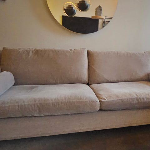 I bra skick, men katten har rivit en del på sidan. Borde gå att laga med nål, tråd och sax dock.