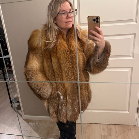Fodret har några fläckar och hål som inte syns när sjalen bärs (se bilder).