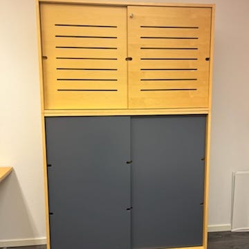 Skåpmöbel med 8 låsbara skåp bortskänkes.
