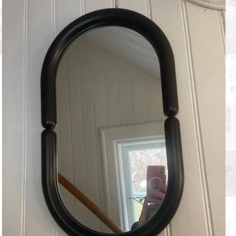 Oanvänd svart spegel med fina mönster, kan ej skickas så hämtas med inom Stockholm kan vi leverera mot liten avgift!