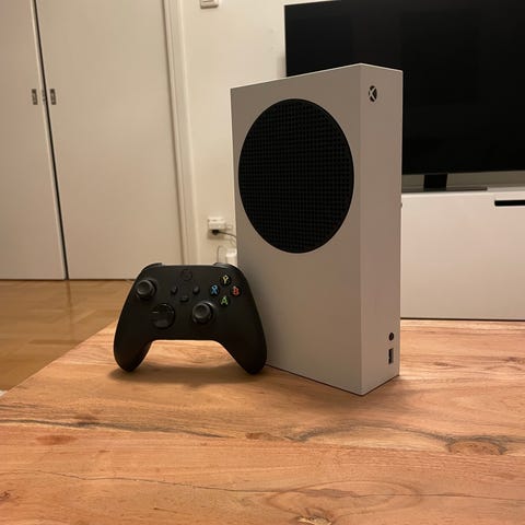 Microsoft Xbox Series S spelkonsol. Konsolen har en kompakt design och är avsedd för Xbox Series-spel. Produkten inkluderar två vita handkontroller och 5 spel. Fungerar bra och är uppdaterad med en en ssd hårddisk istället för en hdd totalt, 780gb som är användbart.