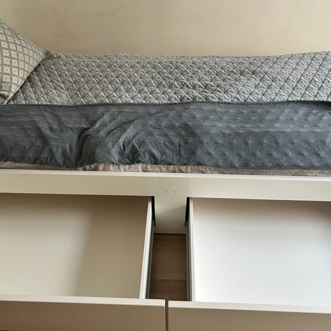 90*200 Säng med förvaring. Väl använt, ge mig ett pris Från 200:-, vill bli av med det innan jul. Den är monterad, vill ni nedmontera den då är det ni som gör det. Kanske nån fin julklapp...?