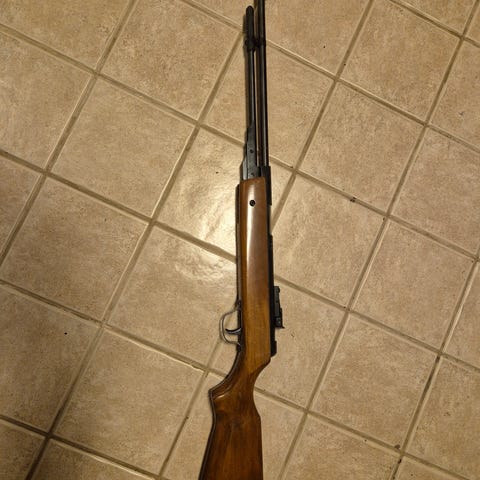 Luftgevär av tävlingstyp med skena för kikarsikte.