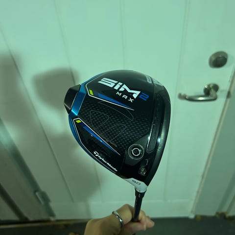 TaylorMade SIM2 Max spoon(3a) med justerbar loft och svart design. Klubban är utrustad med ett stiffskaft och är avsedd för golfspelare som söker prestanda och precision.