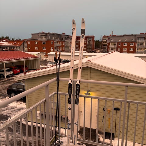 Skidorna finns i Åre, kan hämtas eller skickas.