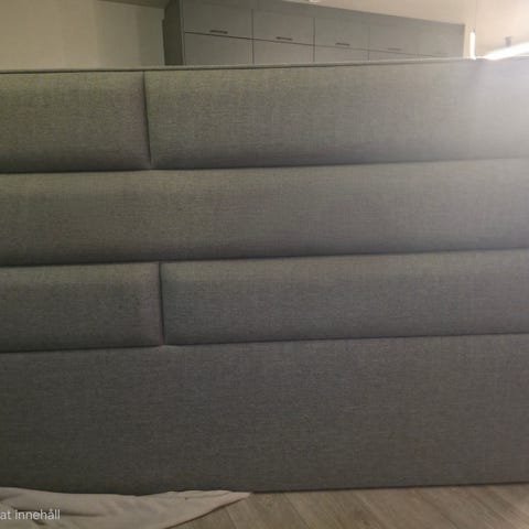 Huvudgavel med toppskiva i rökt ek. Vägguttag på vardera sida som kopplas in i ett vägguttag med stickpropp. Lamporna ingår. I grunden är det en Brimnes från IKEA.