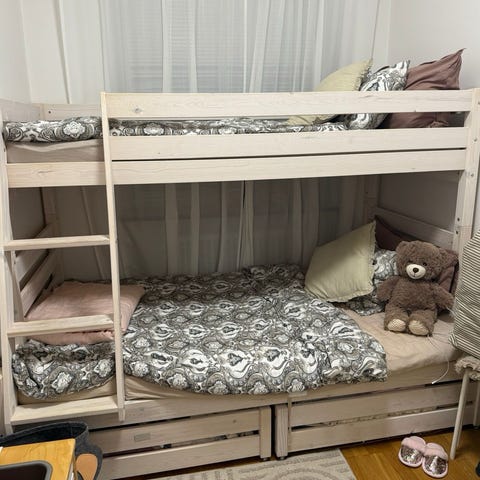 Våningssäng Selma familjesäng från Severins 120x200 med madrasser, två förvaringslådor