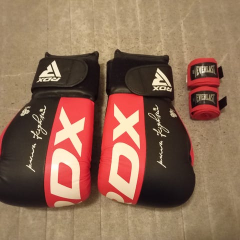 Fina handskar och lindor 6 månader gamla. Bara testat dem. Som nya. Köpte dem vid en aktiv klubb. Jag kan tyvärr inte använda handskar. Testade flera typer. Därför säljer jag.