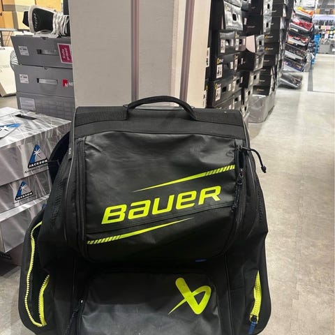 En rull back som är använd i många säsonger men allt funkar, allt går att ta bort om man vill, men annars är det två rör till klubborna och en slags låda som man kan ha tejp och annat i tex.