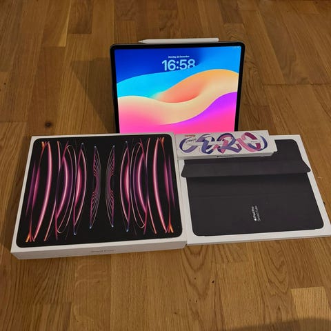 iPad Pro från 2021 med 128GB minne & 8GB RAM, funkar utmärkt för de flesta tyngre användningsområdena. Har möjlighet för SIM-kort, så 5G är möjligt och sjukt smidigt att ha i! INGÅR: Apple Pencil (2:a generationen), ny original-väggadapter från Apple, ny sladd samt originalförpackning för iPad.