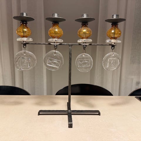 ”Hurricane Boule är vår mest populära lykta. Handblåst i landskapet Böhmen, där världens bästa glasblåsare finns. Bubblorna, skapade i en gjutjärnsform, ger Boule sitt unika optiska mönster och en lyxig tung känsla. Den är otroligt vacker att blanda med de metalliska Classic-lyktorna.