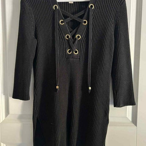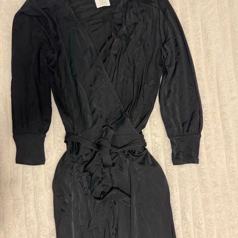Jumpsuiten är helt ny men säljs utan skärp. På sista bilden ser du två hällor där du enkelt kan fästa vilket bälte du vill. Materialet är mycket fint och av hög kvalitet. Den är svart och glittrig, och glittret fäller inte. I verkligheten är den ännu mer glittrande än på bilderna.