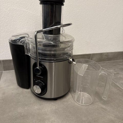 Severin juicepress tillverkad i rostfritt stål med plastdetaljer. Designad för att pressa juice från frukt och grönsaker. Utrustad med en behållare för fruktkött och en strömbrytare fram. Färg: silver och svart.