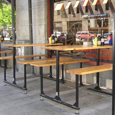 Uteservering metallstaket i svart färg. Staketet har ett nätmönster och en solid panel med tryckt design. Höjd cirka 49 cm, alla sektionen längden är 10m . Passar för användning som restaurang uteservering