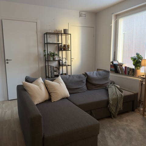 Säljer en bekväm och stilren hörnsoffa, köpt i år & kvitto finns, i mycket fint skick. Soffan fungerar även som bäddsoffa och har inbyggd förvaring under sitsen, perfekt för täcken, kuddar eller andra saker.