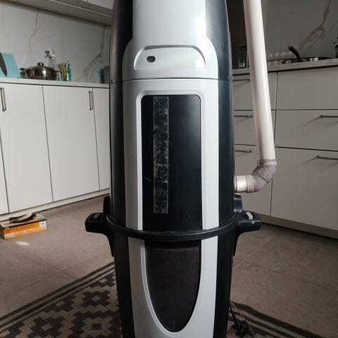 IPC Foma HS 133EL centraldammsugare. En fast installerad dammsugare avsedd för användning i bostäder och mindre lokaler. Enheten är utrustad med slang och tillbehör.