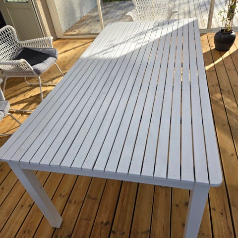 Stort och stadigt bord, tillverkat i massivt trä med en robust konstruktion och en fin ytbehandling. Bordet har ett stabilt X-format underrede och en stor bordsskiva.