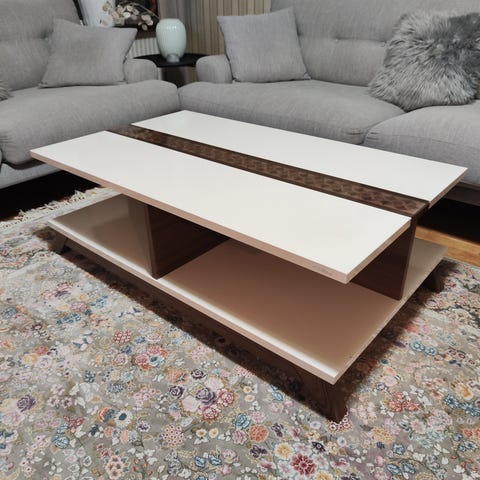 Vackert ekbord i svart bets med en underhylla. Visst slitage.