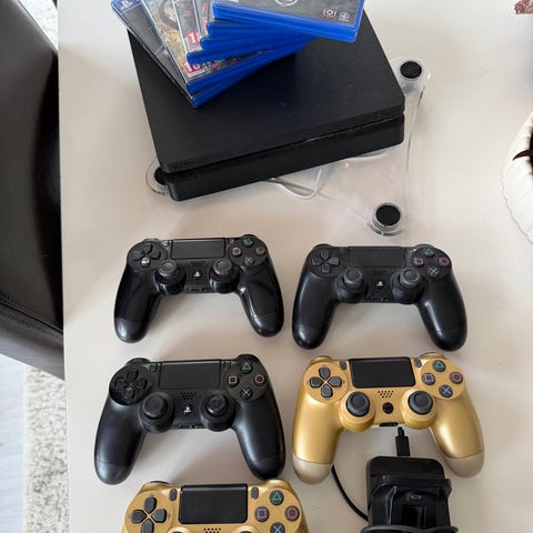 Säljer min gamla trotjänare, fungerar felfritt. Playstation 4 slim 500gb minne, en original handkontroll och 10 spel.