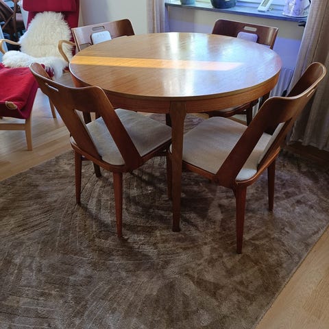 Säljer min kära Matgrupp pga flytt till mindre. 5 hela stolar, det finns en sjätte där behöver ryggen limmas