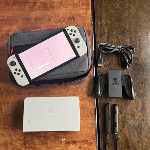 Switch OLED i nyskick inklusive en extra kontroll och Mario Kart 8 och moving out.
