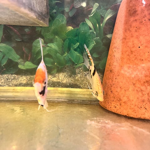 En lekpar scalare söker nytt hem, de har lyckats med ägg men malar åt upp de. Deras föräldrar är red back och grå scalare.