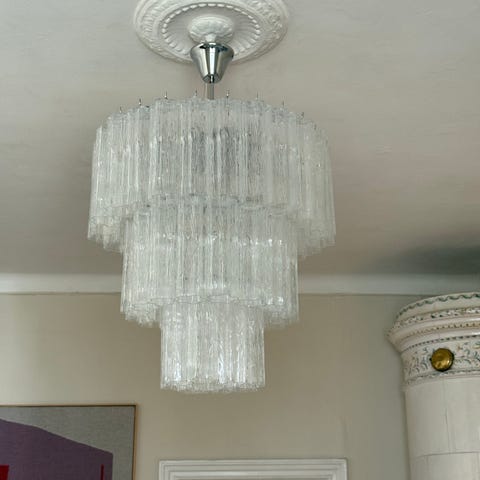 Unik taklampa i Muranoglas med metallkedja