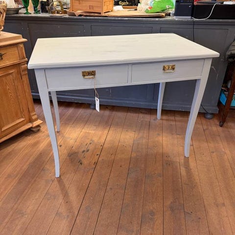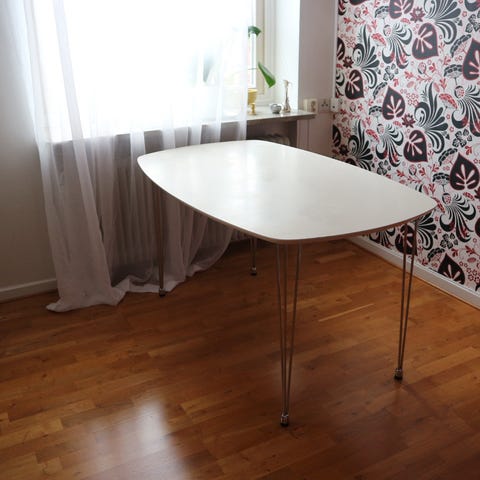 Skrivbordsskiva i härdat glas, specialbeställd till min arbetsbänk (haft axel hurtsar från ikea under). Alltid haft dekorplats på men finns enstaka små skrapmärken.