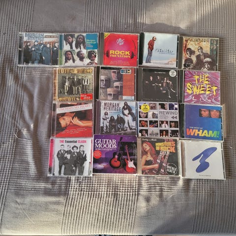 En samling av CD-skivor med musik från olika artister och genrer. Skivorna är i standard CD-format och innehåller varierande musikaliskt innehåll. Passar för musiklyssning och samlarintresse.