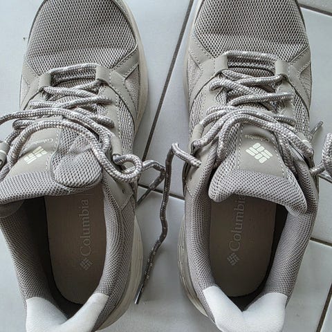 Columbia Vandringsskor i storlek 38 dam, utformade för vandring. Skorna har en slitstark sula med bra grepp och en kombination av material i grå och röd färg. Passar för utomhusaktiviteter och terrängvandring.