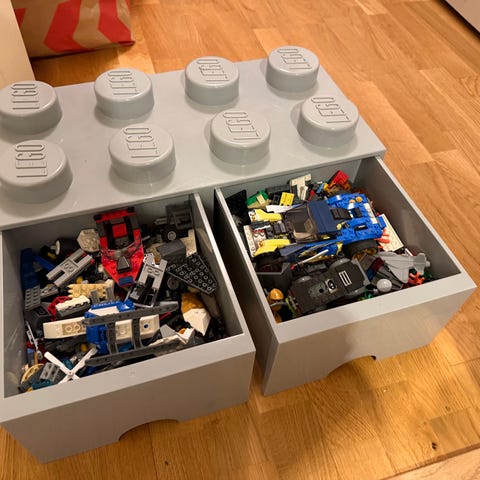Hej! Säljer 7 kg blandat Lego inkl en förvaringslåda med lock och hjul.