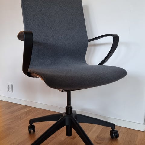 ”Denna ergonomiska kontorsstol håller dig bekväm och fokuserad med ett högt ryggstöd som ger bra stöd, gjort med luftig mesh som håller dig sval. Stolsklädseln är avtagbar och tvättbar. 10 års garanti.”