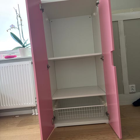 Kids wardrobe in a good condition w 2 racks and a basket for storage.