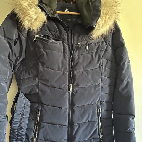 Marinblå 3-lagers softshelljacka med avtagbar huva, justerbara ärmslut samt dragsko nedtill. Jackan har två sidfickor, bröstficka med reflexdekor samt två innerfickor. Helt ny, alla lappar finns kvar.