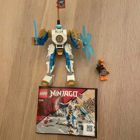 LEGO NINJAGO Lloyds gyllene mech 71702 med detaljerade delar i vitt, guld och svart. Setet inkluderar en stor robotfigur och minifigurer. Rörliga armar och ben.