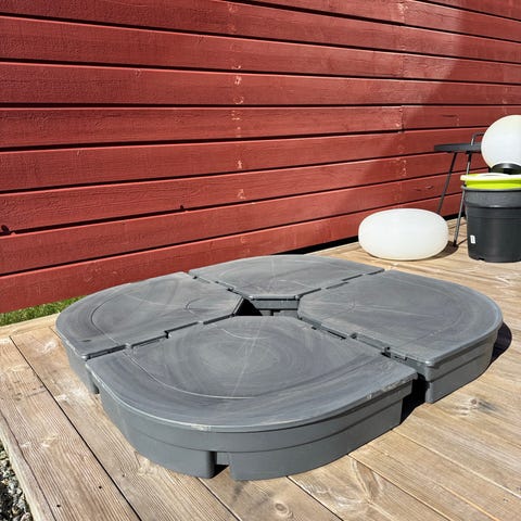 Har ett 2-delat isolerat lock 2 m i diameter till vedeldad badtunna.