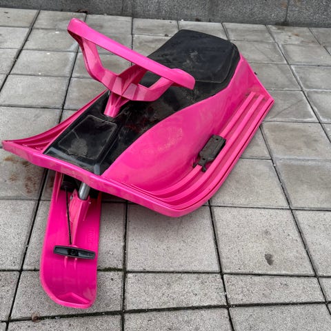 1st Snötiger. Okänt märke, köpt i butik. Passar mindre barn pga storlek och vikt, speciellt jämfört med en snow racer. 300kr