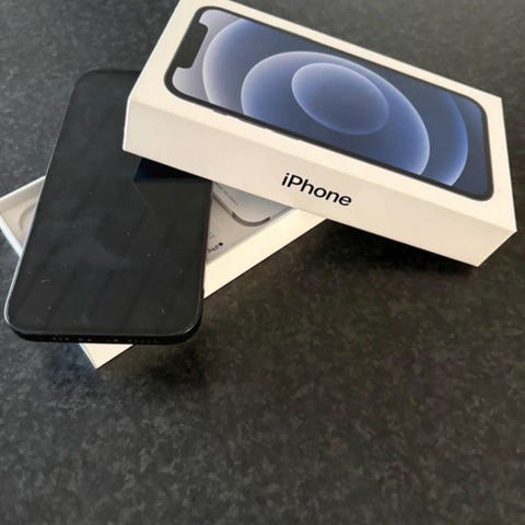 Säljer min iPhone 12 som är i bra skick. Som visas på tredje bilden är kameran sprucken men själva kameran funkar som vanligt. 64GB