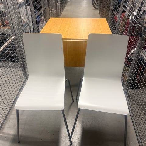 2st snygga stolar Ikea Jules, vanliga fötter (inte hjul) och vuxenstorlek. Rejält stabila och stapelbara. 75kr styck eller 100kr för båda.