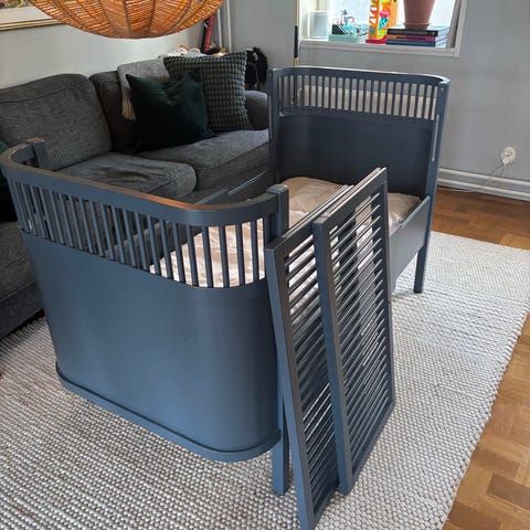 Vi säljer vår fina Sebra utdragbar baby- och juniorsäng. Sängen är utdragbar med avtagbara sidor och kan användas både som babysäng och som juniorsäng. Sängbotten är justerbar i två höjder. Vi har ordnat med en skumgummimadrass själva, som kan fås med och är anpassad efter spjälsäng.