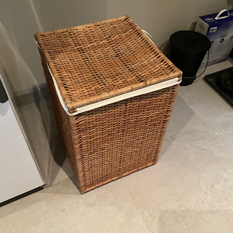 Fin äldre tvättkorg i rotting
