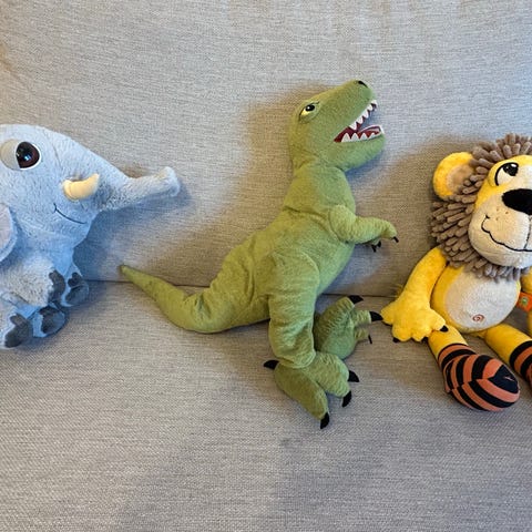 Blandade gosedjur. 60 kr för dom största, 20 för dom minsta