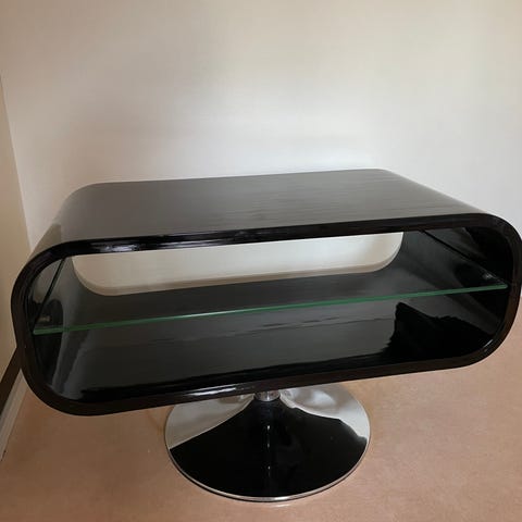 Fin tv bänk med lådor samt skåp. Specialbeställd glasskiva på toppen