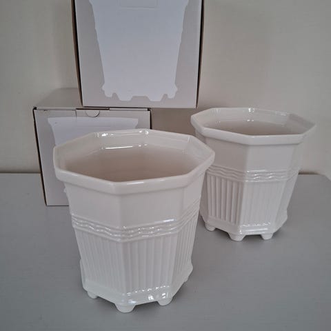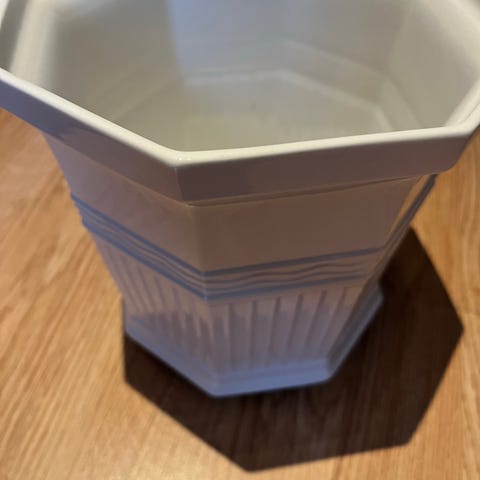 Waldemarsudde kruka (Prins Eugen) i vitt porslin med tiokantig form och dekorativa räfflade detaljer. Produkten levereras i originalförpackning och är avsedd för inomhusbruk. Helt ny, största modellen.