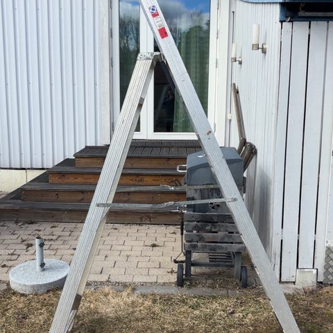 Obs, lilla stegen är ett visningsexemplar. Auktionen omfattar nya och oanvända stegar.