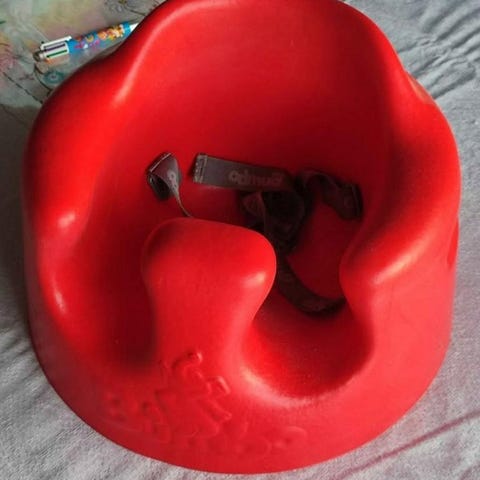 Bumbo Floor Seat i blå färg. Tillverkad i mjukt och formbart material för barns komfort och säkerhet.