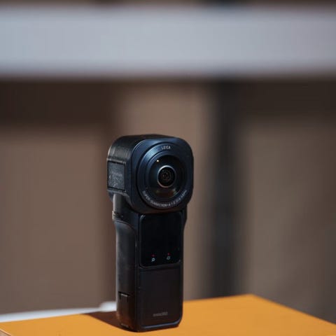 Insta360 X3 360-kamera med tillbehör. Kameran är utformad för att fånga bilder och video i 360 grader och erbjuder avancerade funktioner för kreativ fotografering och videoinspelning.