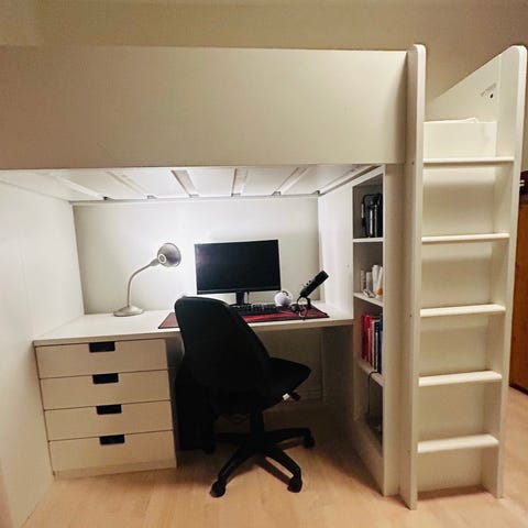 IKEA SMÅSTAD loftsäng med skrivbord och förvaring vit