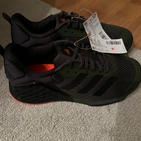 Adidas Solarboost 5 träningsskor i storlek 44. Skorna är designade för träning och har en svart färg med vita detaljer. Materialet är anpassat för sportaktiviteter och ger stöd och komfort under träning.