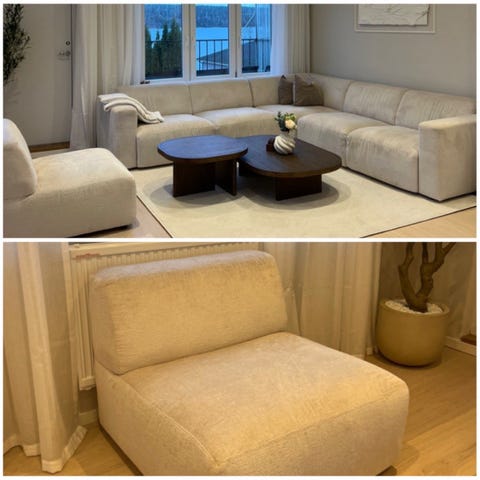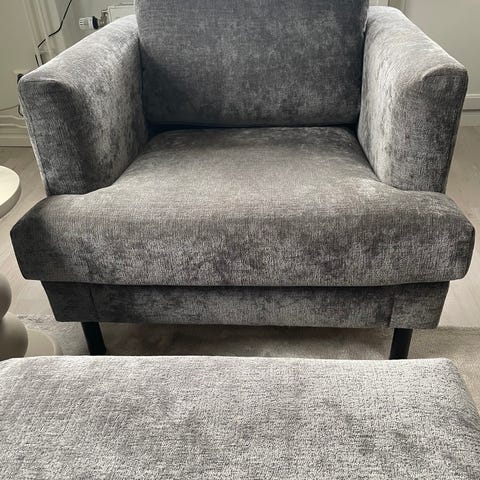 Fåtölj med fotpall – Mio (Cordelia). Pris: 4 000 kr.